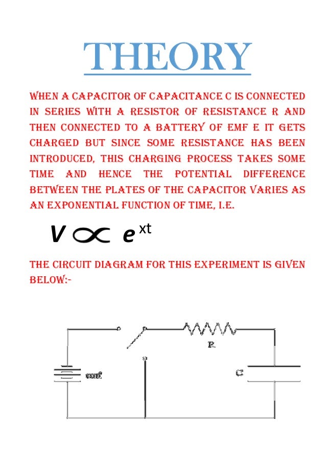 Physics investigatory projects on capacitor self made Created Date. Physics investigatory project aim charging and discharging of capacitors in r c circuit purpose the goal of this project is to verify that 63 charge is stored in a capacitor in an r c circuit at its time constant and 63 charge remains when capacitor is discharged and hence plot a graph between voltage and time. Capacitors are used in electrical circuits as energy-storage devices.