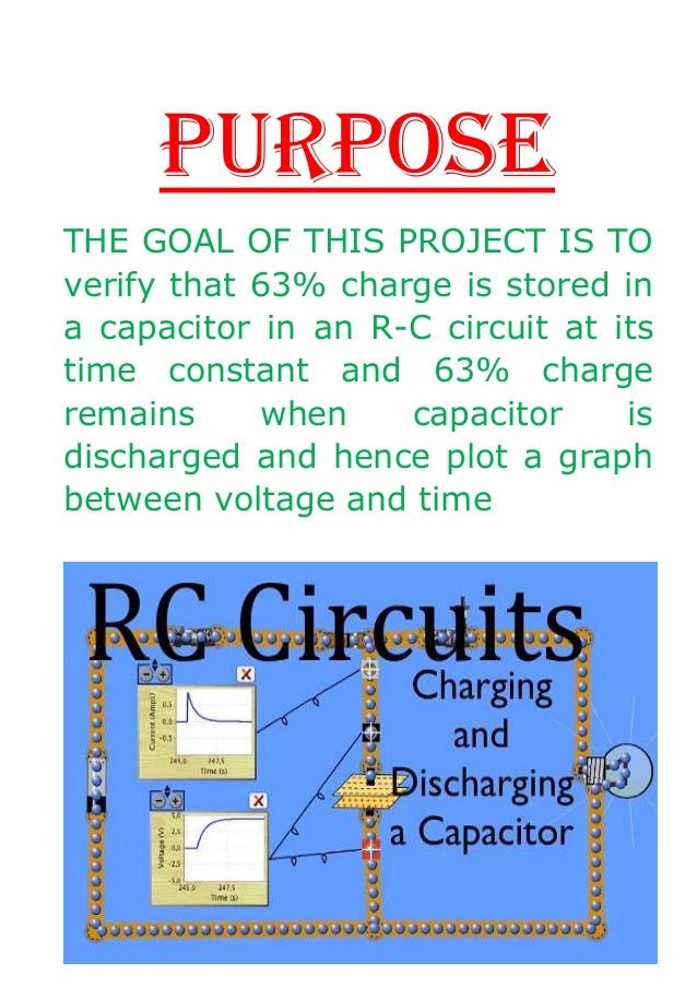 PHYSICS INVESTIGATORY PROJECT AIM- CHARGING AND DISCHARGING OF CAPACITORS IN R-C CIRCUIT PURPOSE THE GOAL OF THIS PROJECT IS TO verify that 63 charge is stored in a capacitor in an R-C circuit at its time constant and 63 charge remains when capacitor is discharged and hence plot a graph between voltage and time. Each project description starts with a summary of theoretical. 2 NAUSENABAUGH VISAKHAPATNAM DEPARTMENT OF PHYSICS CERTIFICATE This is to certify that RAHUL KUSHWAHA a student of class XII-A has successfully completed the research on the below mentioned project under the.