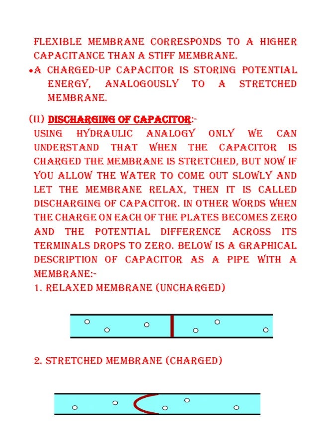 The flow of current alters the charge on a capacitor just as the flow of water changes the position of the membrane. Water molecules cannot pass through the membrane but some water can move by stretching the membrane. Carrying out these projects may take anything from a few days to several weeks and in some cases months.